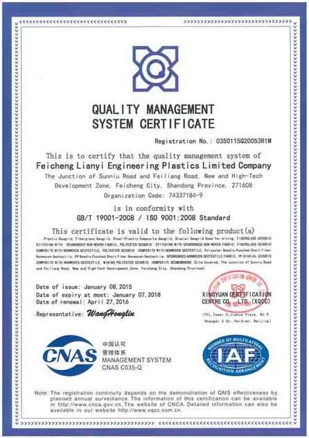 肥城聯誼工程塑料有限公司擁有德國KARLMAYER高速經編機、MALIM0多軸向織機、道尼爾織機和兩條雙向格柵生產線,兩條單向格柵生產線,掌握了門澤爾公司的涂層技術。公司主要生產和經營各類塑料土工格柵、玻纖土工格柵、三維土工網墊、土工網、土工格室、土工布、復合土工膜等工程材料。